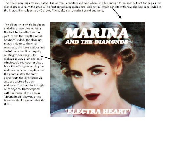 Below are some images of CD covers. These female singers are also quite closely associated to the genre of 'Lana del rey'. Every album cover is similar in each way. They are all very simple with not a lot going on within the image. The singer and the album cover is very plain and simple. It doesn't bring much attention away from the singer. At least half of the CD cover were in black and white. The reason for this was to connote nostalgia. The audience would immediately be able to see what type of genre the singer associates herself with. We also assume that the songs on the CD will symbolise sadness and depression. Most of them tend to be close ups. The reason for this is so we can see the emotion they are giving off through their album again creating assumptions for the audience. A lot of songs will be sad which is a strong emotion emphasised across their faces on the covers. Some of them also shy away from the camera emphasising this. Every single digipack cover also has a title in capital letters, this could be because it makes it stand out more.